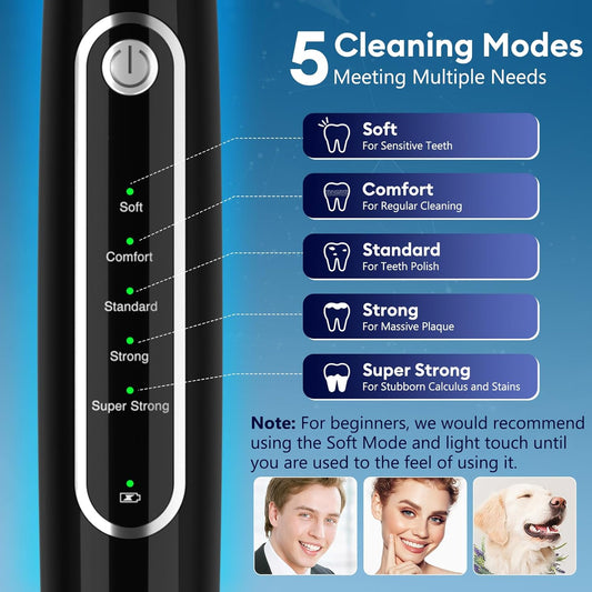 Plaque Remover for Teeth, Tartar Remover Teeth Cleaning Kit with LED Light and 5 Modes, Dental Calculus Remover Teeth Cleaning Kit for Home Travel, Black
