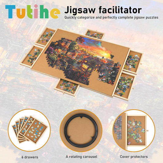 1000 Piece Rotating Puzzle Board with Drawers and Cover,23"x30"Portable Wooden Jigsaw Puzzle Table for Adults Portable,Lazy Susan Spinning Puzzle Boards Birthday Gift for mom